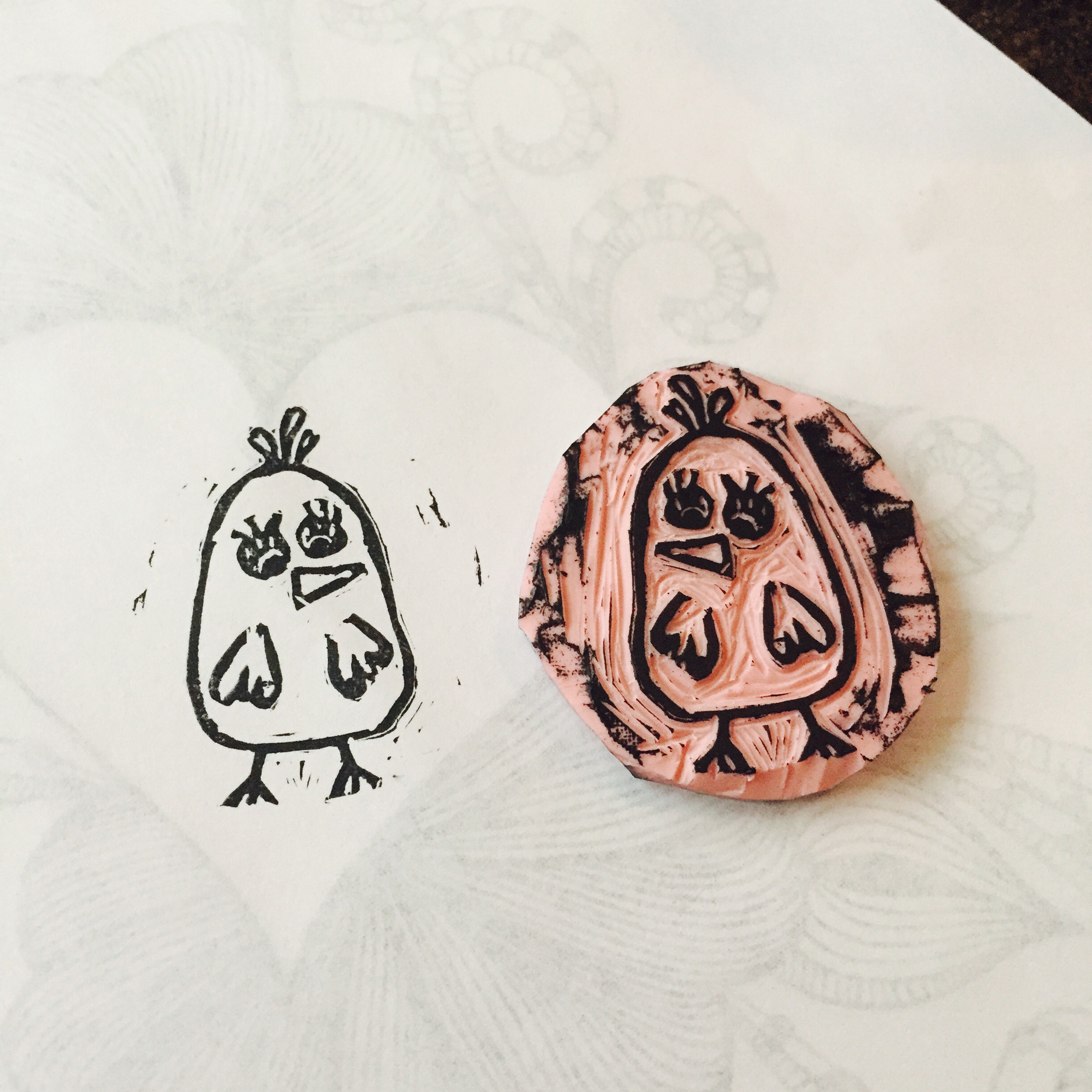 Kaitlynn fell in love with the idea of carving your own rubber stamps. I taught her how to use the tool on a scrap of rubber and then let her go. She completed the three above in one night!