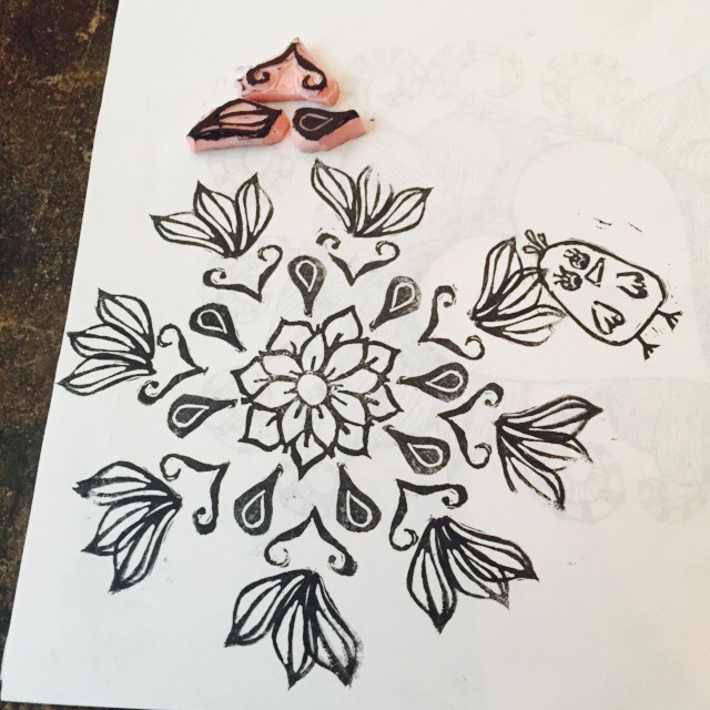 And I refuse to have waste! All those little corner slices that I cut off get random shapes carved into them. Now I can make a mandala from stamped images! Yay! So much fun… really… I love carving stamps although I have no use for the other ones lol. Oh well! Fun! That’s all that truly matters!