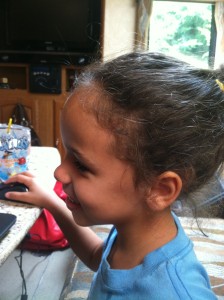 She is remarkably smart and terribly precocious. She was talking at 5 months and I’ve not had a quiet moment since. She was holding her pencil correctly and writing by 1 1/2. She keeps me on my toes any given day of the week!